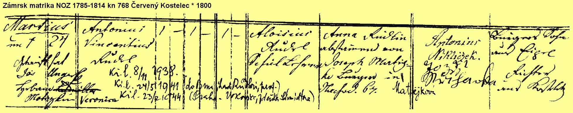 Birth 28 August 1800 -- Malá Bukovina