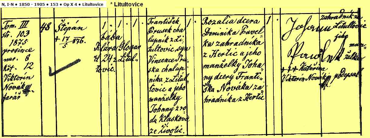 Death 17 May 1876 (Age 5 months) -- Litultovice