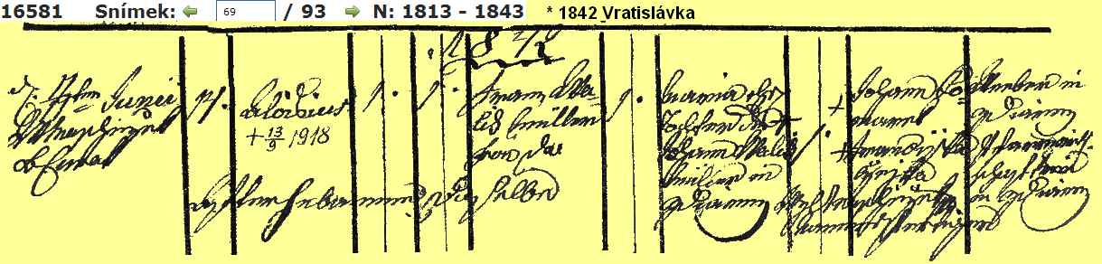 Birth 11 June 1842 -- Vratislávka