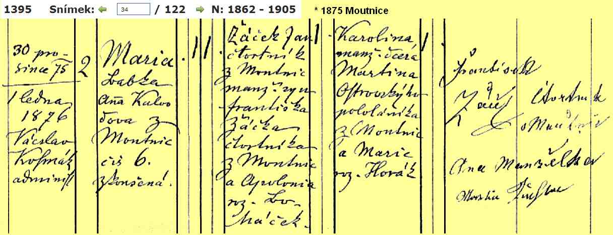 Birth 7 March 1868 -- Moutnice