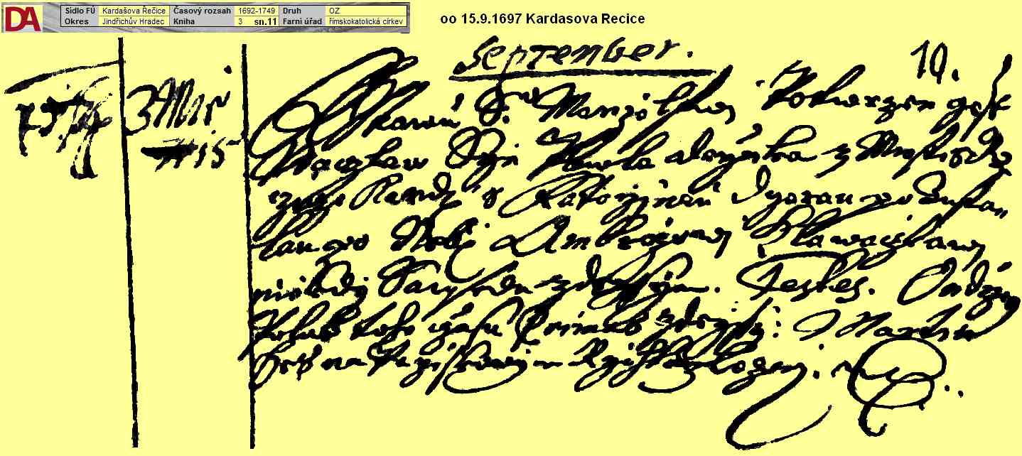 Religious Marriage 15 September 1697 -- Kardašova Řečice