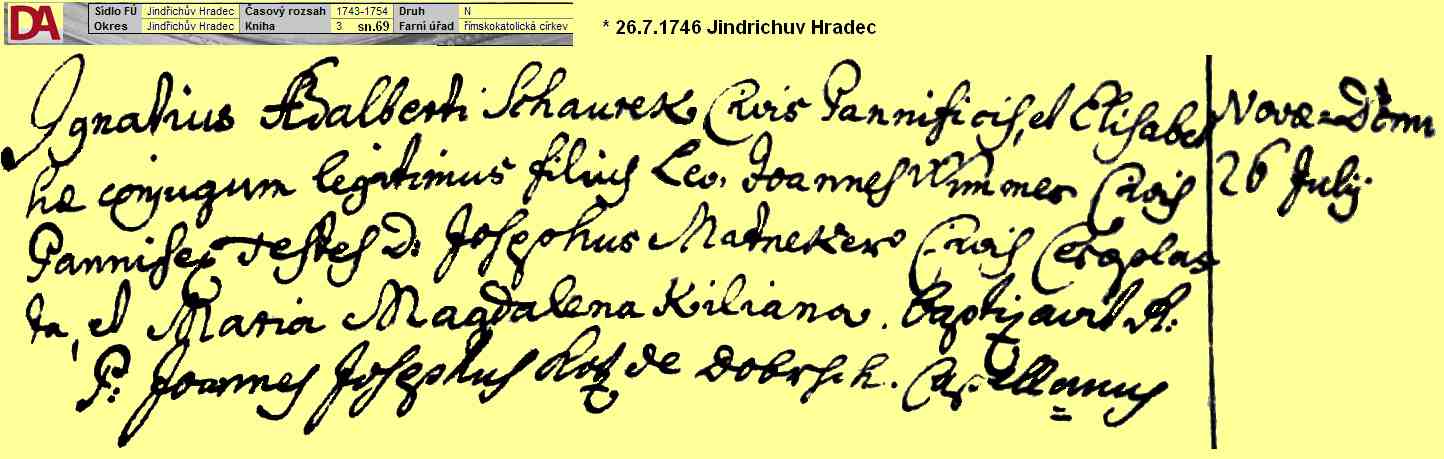 Religious Marriage 1 November 1740 -- Jindřichův Hradec