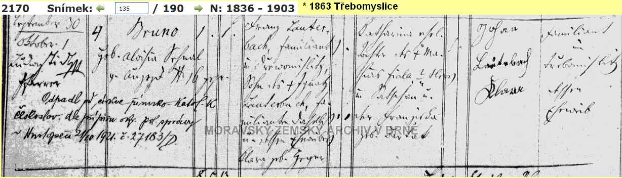 Death 12 March 1859 (Age 7 days) -- Třebomyslice