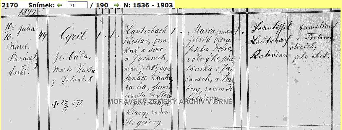 Death 24 September 1872 (Age 2 months) -- Žatčany