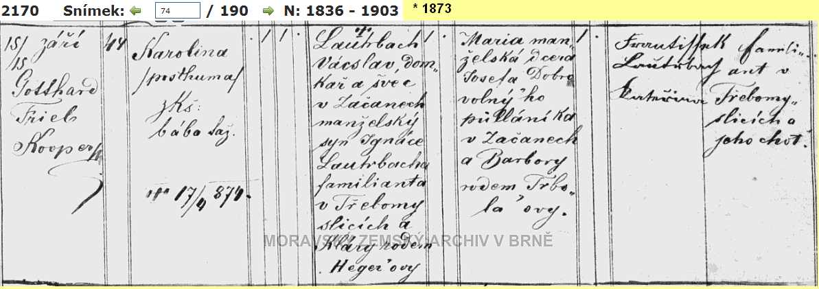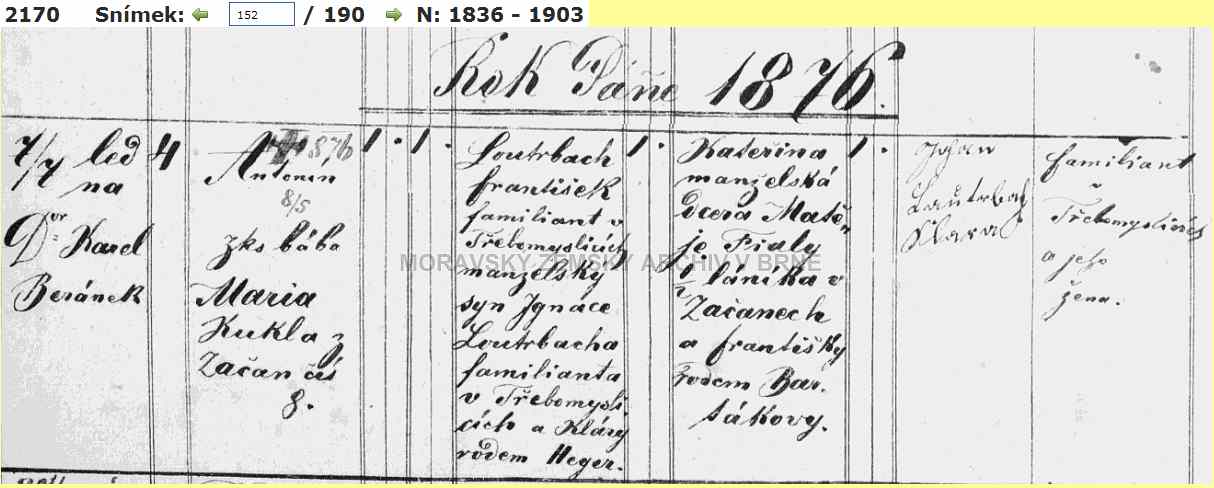 Death 17 April 1875 (Age 19 months) -- Žatčany