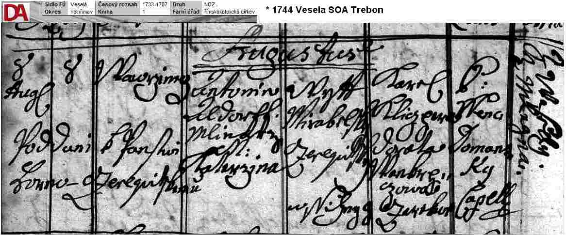 8 and 9 Marriage 17 November 1743 -- Veselá