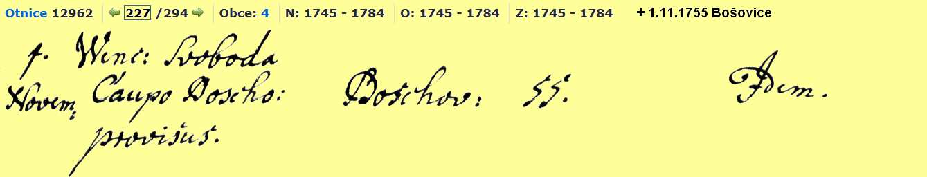 Death 1 November 1755 (Age 55) -- Bošovice