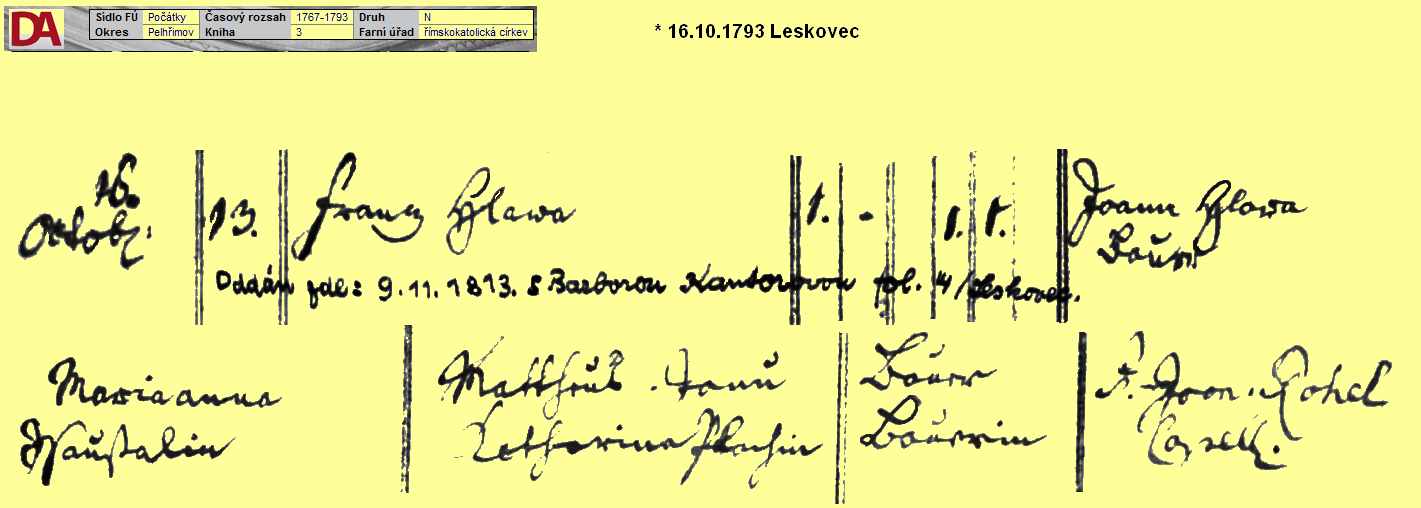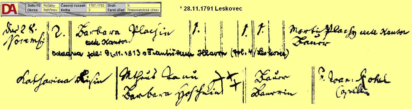 Birth about 1791 -- Rohozná