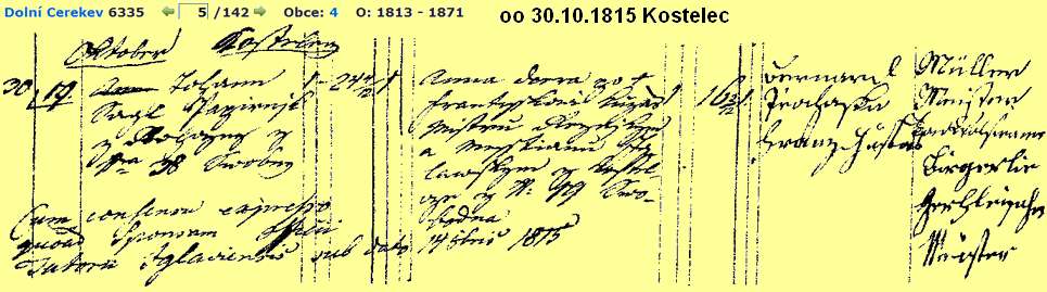 10 and 11 Religious Marriage 30 October 1815 -- Kostelec