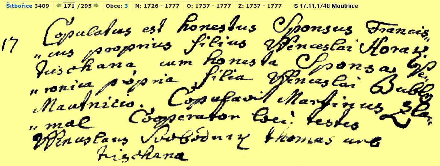 2 and 3 Religious Marriage 17 November 1748 -- Moutnice