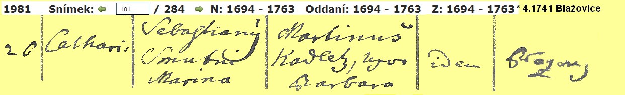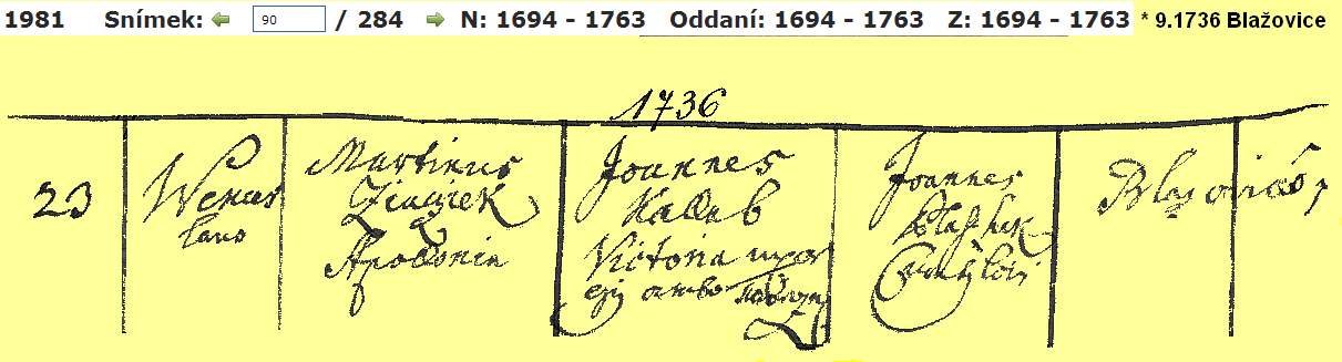 8 and 9 Religious Marriage 15 January 1764 -- Blažovice