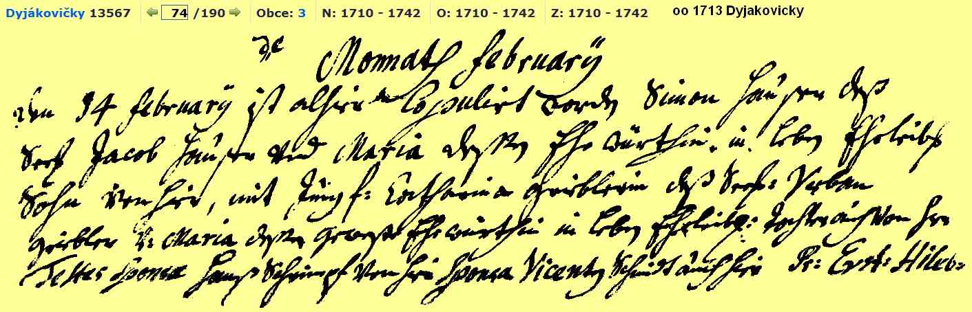 12 and 13 Religious Marriage 14 February 1713 -- Dyjákovičky
