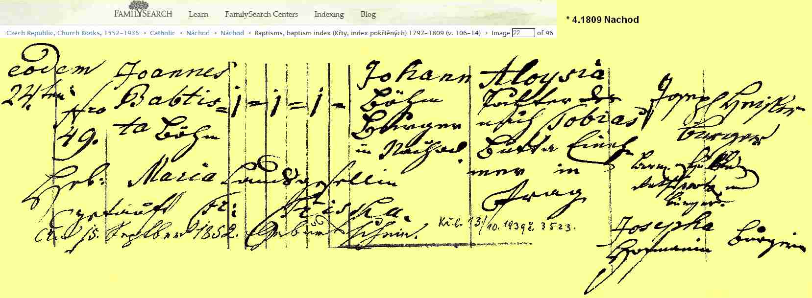 Religious Marriage 14 February 1825 Husband: 26 Wife: 22 -- Náchod