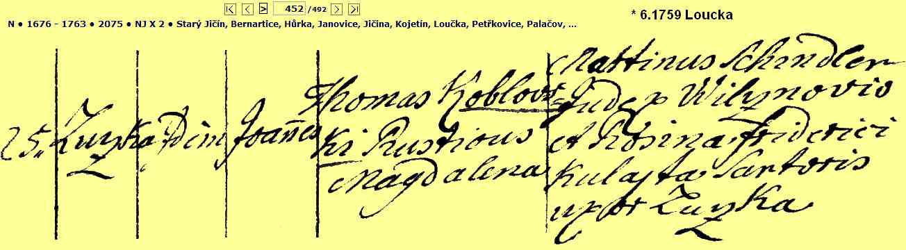 Religious Marriage 10 October 1754 -- Loučka