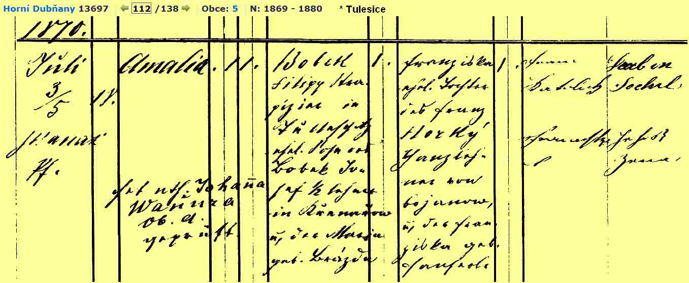 Death 28 April 1871 (Age 9 months) -- Dolní Libochová