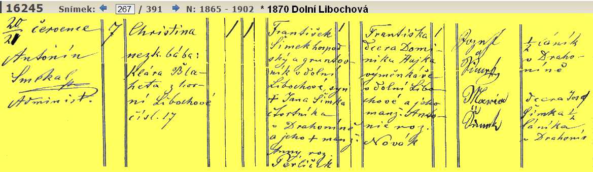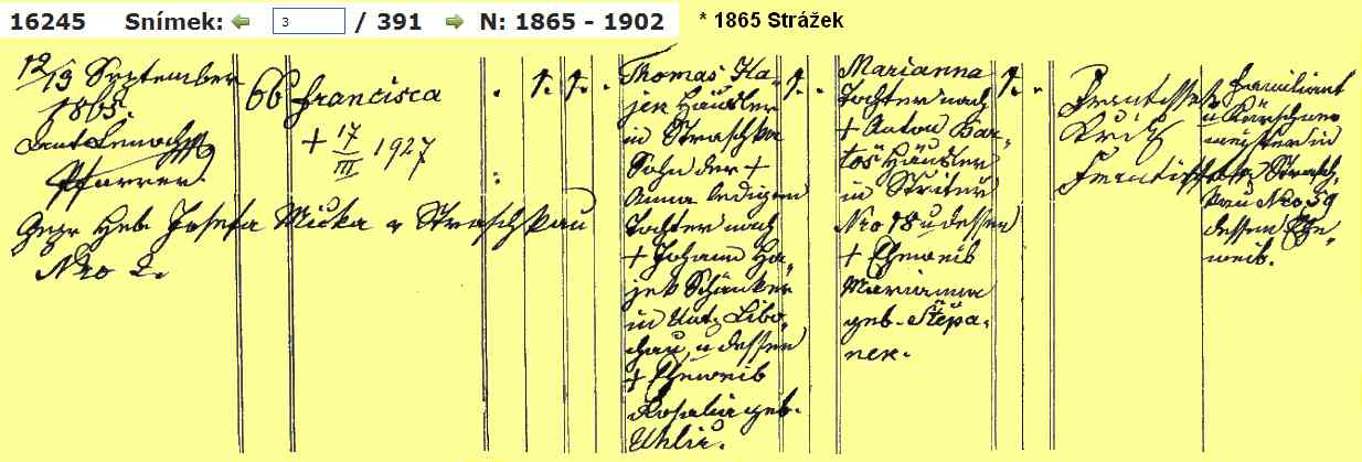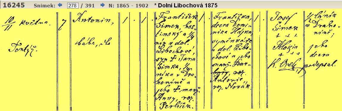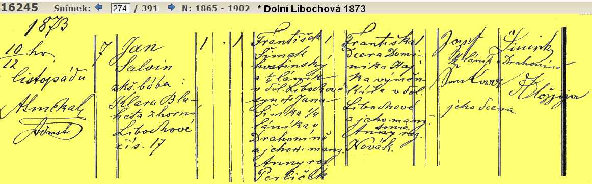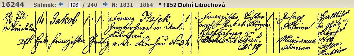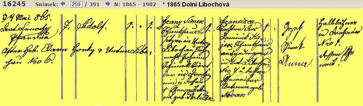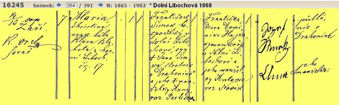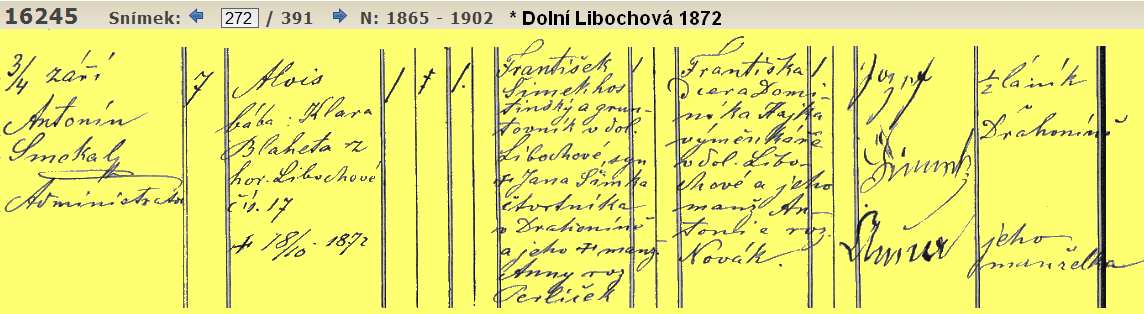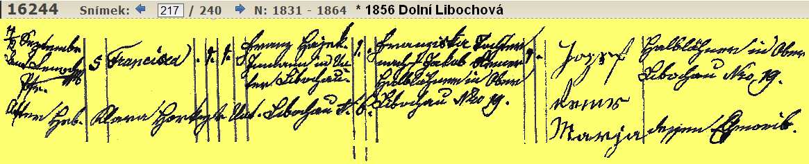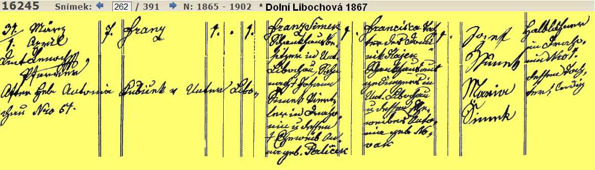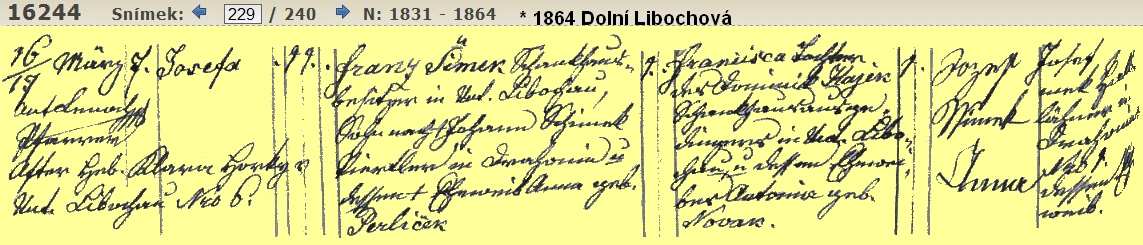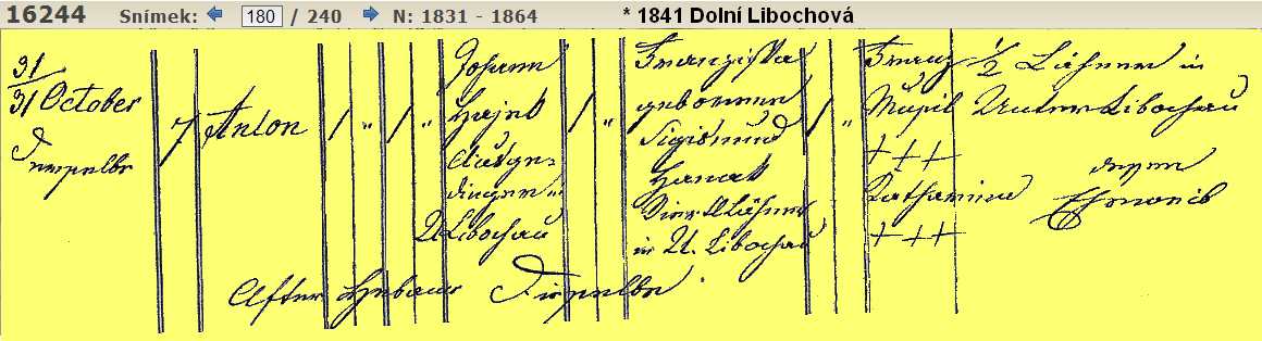 Death 18 October 1872 (Age 45 days) -- Dolní Libochová