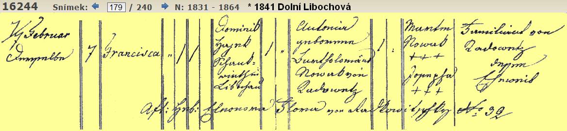 Death 30 May 1839 (Age 12 days) -- Dolní Libochová