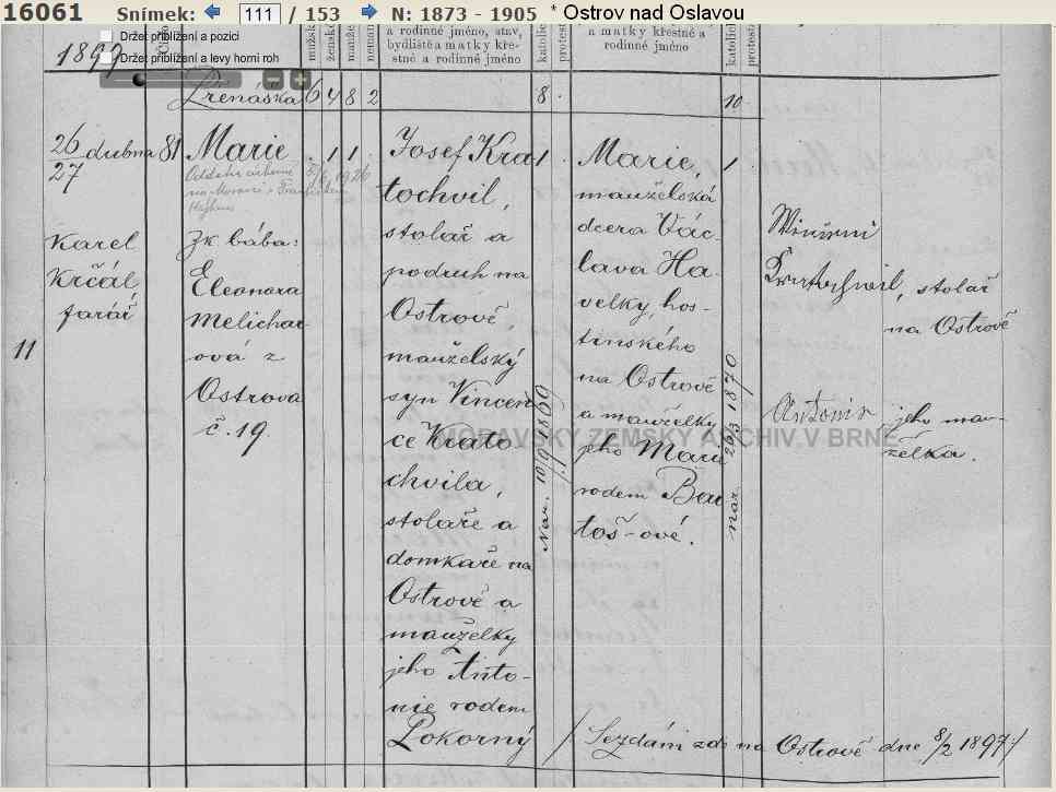 Birth 26 April 1899 -- Ostrov Nad Oslavou