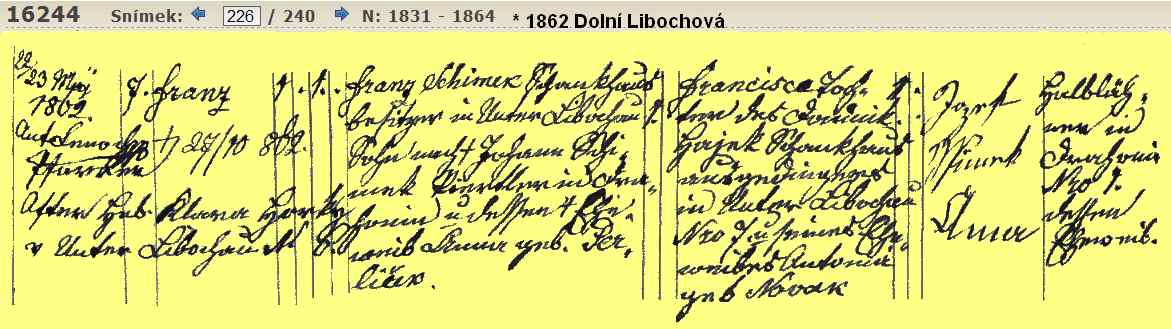 Death 2 April 1875 (Age 58) -- Dolní Libochová