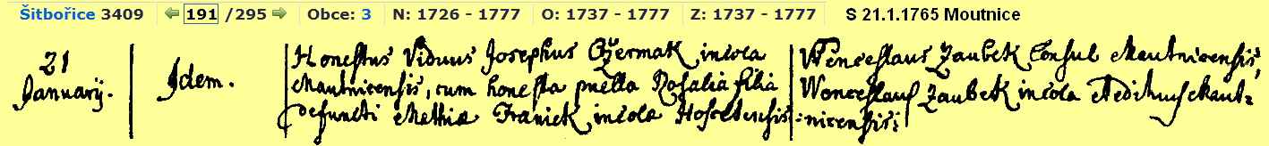 Religious Marriage 21 January 1765 -- Moutnice