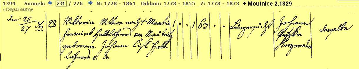 Death 25 February 1829 (Age 63) -- Moutnice