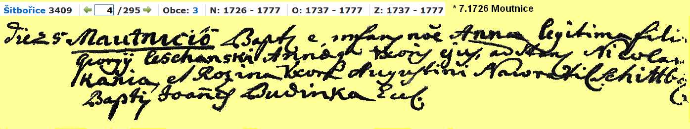 Religious Marriage 22 November 1716 -- Šitbořice