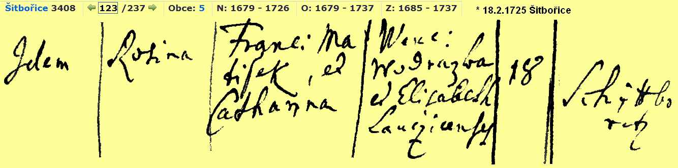 Death 27 April 1701 (Age 11 months) -- Šitbořice