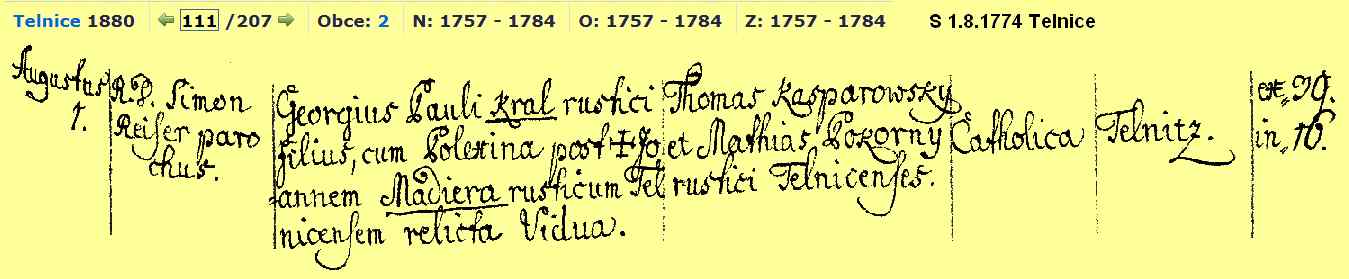 Polexina Králová vdo. Maděrová roz. Vysypalová