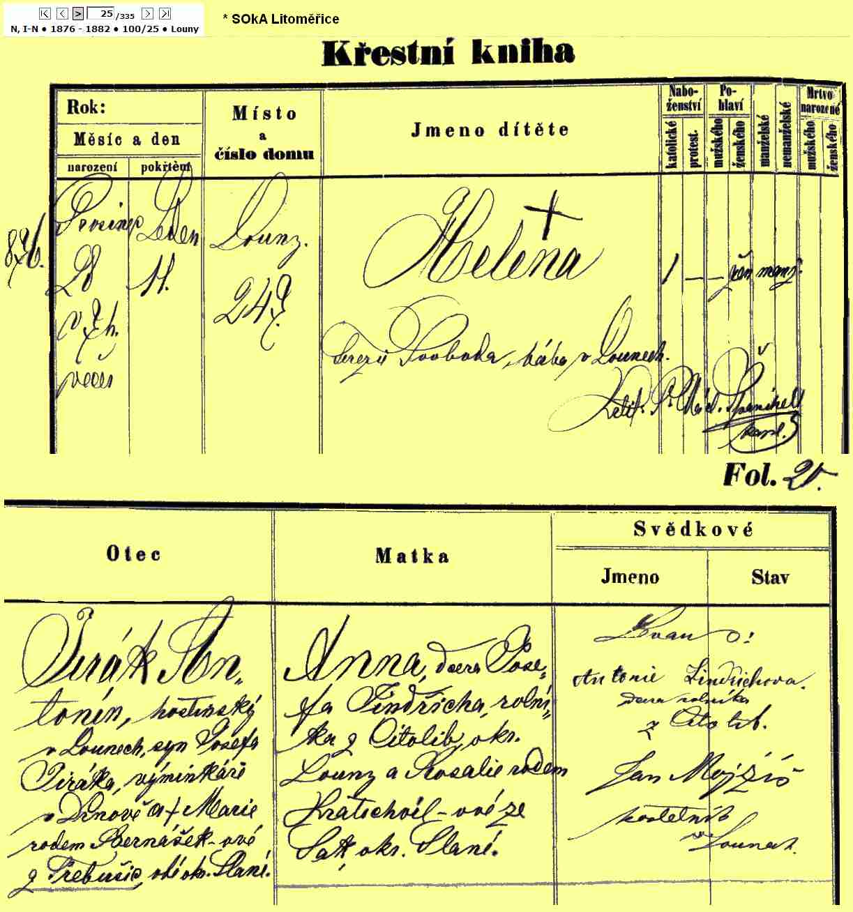 Birth: 28 December 1876 32 35 -- Louny
